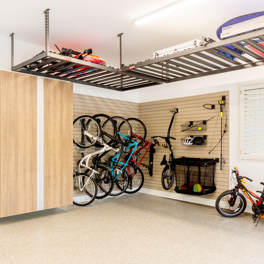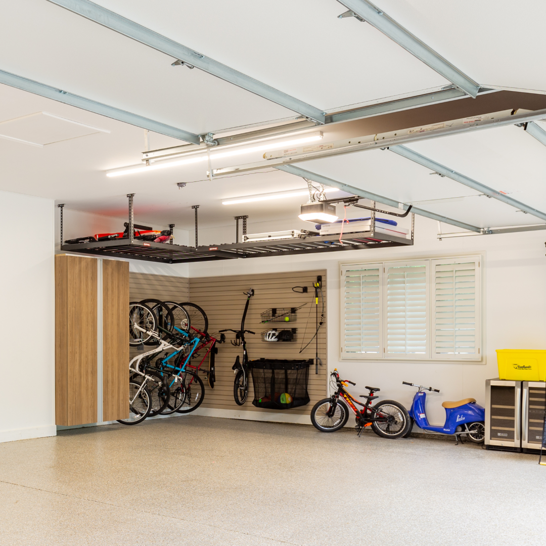 Control clutter with wall storage systems that organize bikes, tools, and gear. Serving South Florida homeowners in Miami, Fort Lauderdale, Naples, and West Palm Beach.