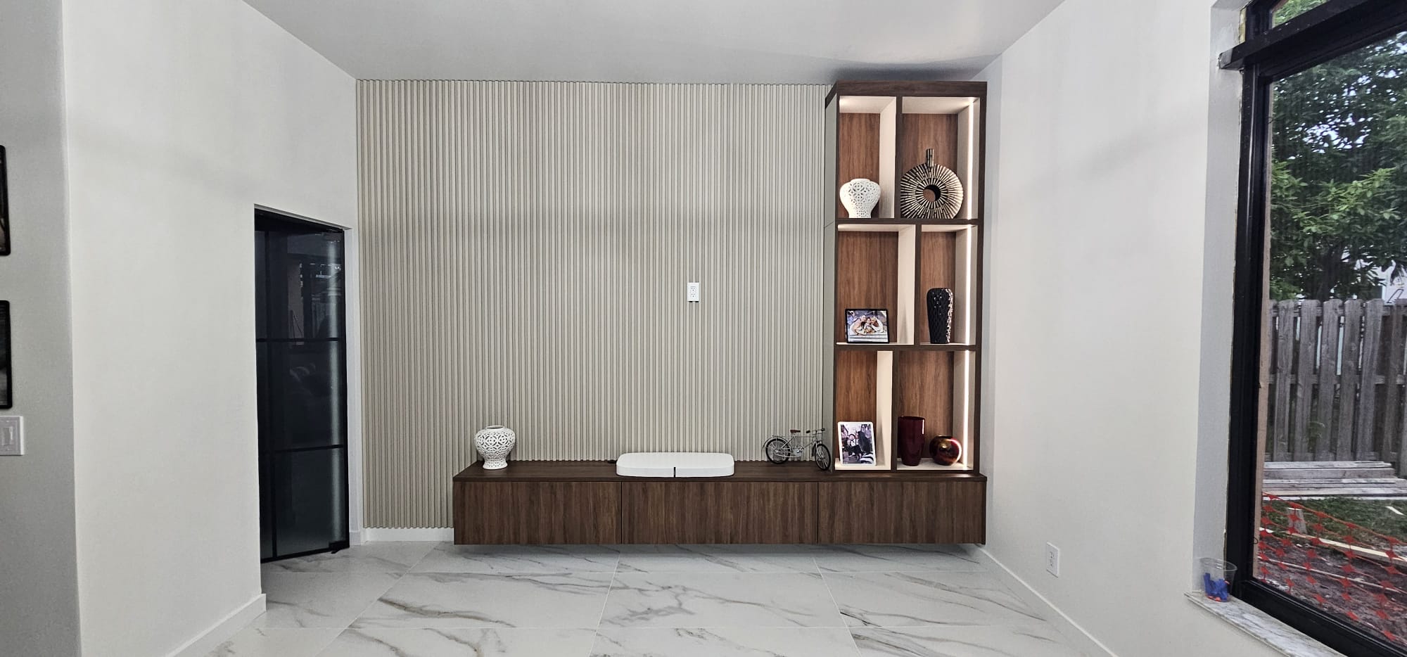 Transform your living room with custom wall units and entertainment centers in South Florida. Serving Miami, Fort Lauderdale, Naples & Palm Beach with storage, display & media organization.