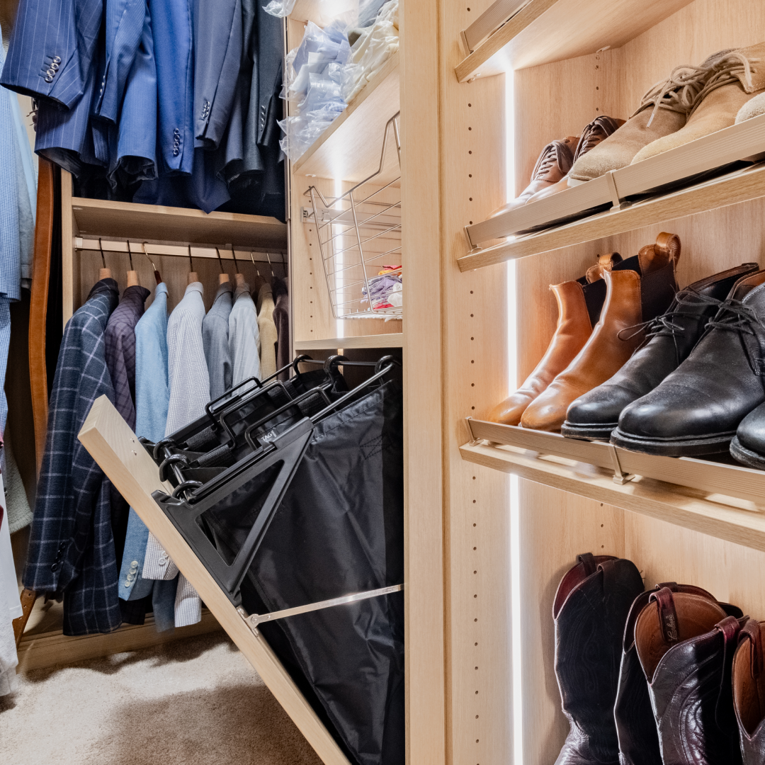 Enhance closets with custom accessories—valet rods, shoe racks, lighting & more. Serving Miami, Fort Lauderdale, Naples & Palm Beach with stylish storage add-ons.