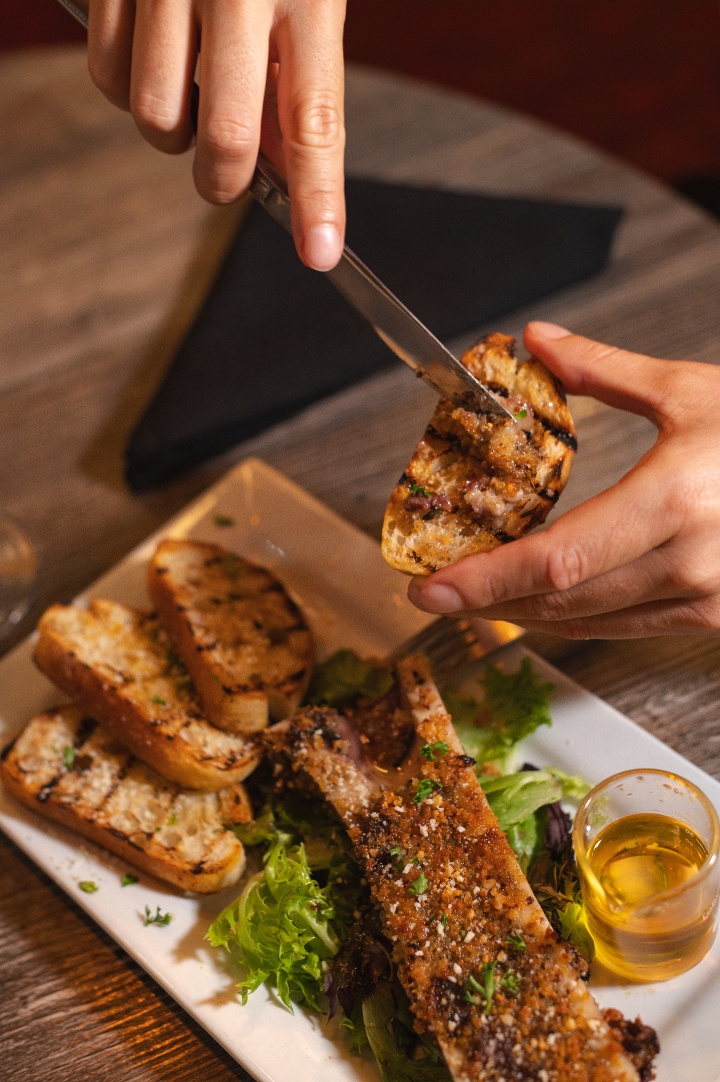 All beef meatballs made in-house, marinara, ricotta, mozzarella cheese, crostini