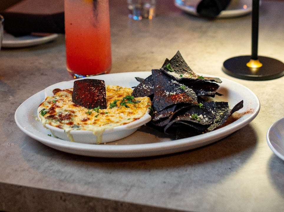 Roasted artichokes, creamy spinach, Mozzarella and cream cheese, house-made Blue corn tortilla chips