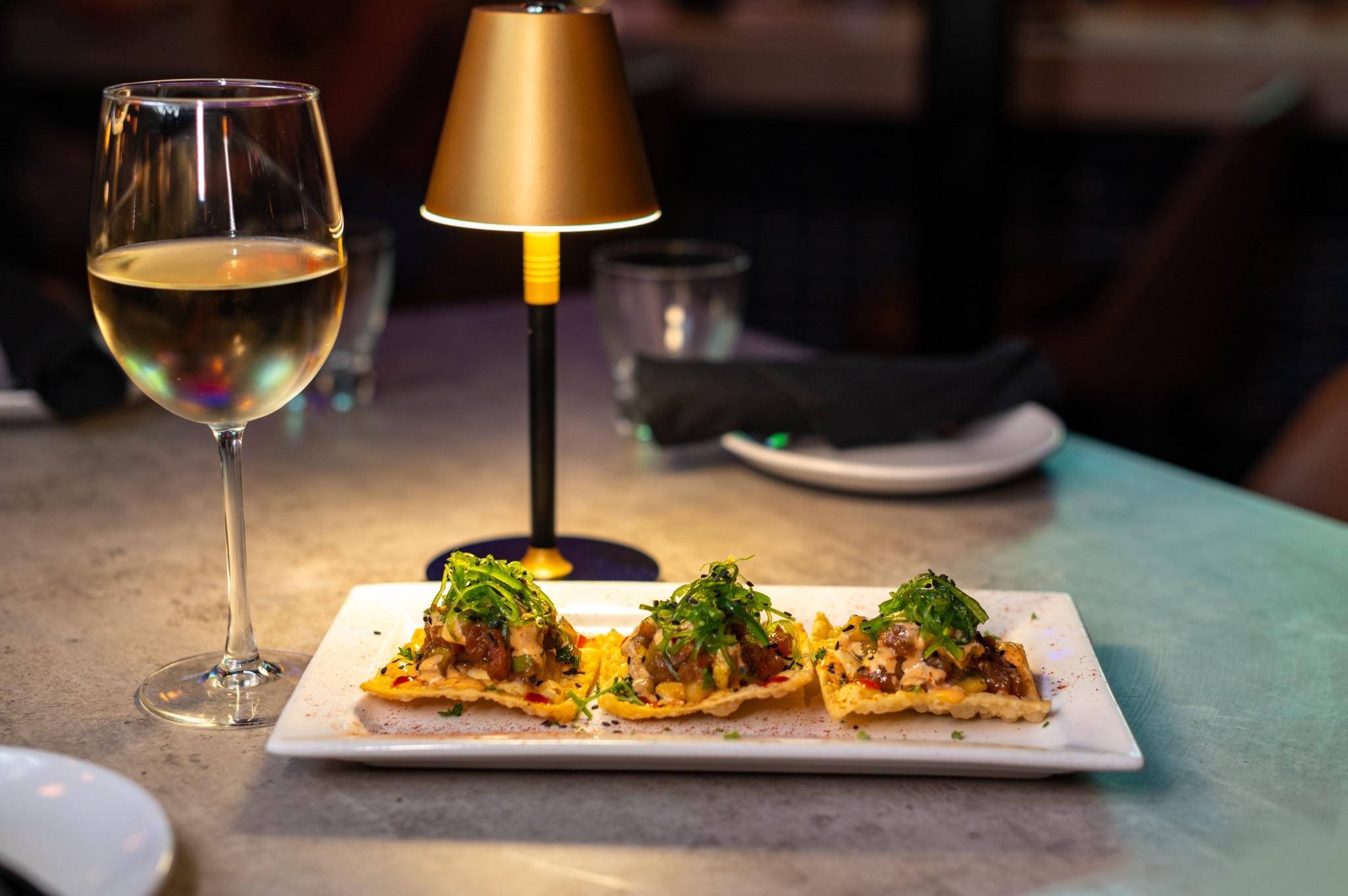 Yellowfin tuna, avocado, sesame seeds, cucumbers, seaweed salad, crispy wontons