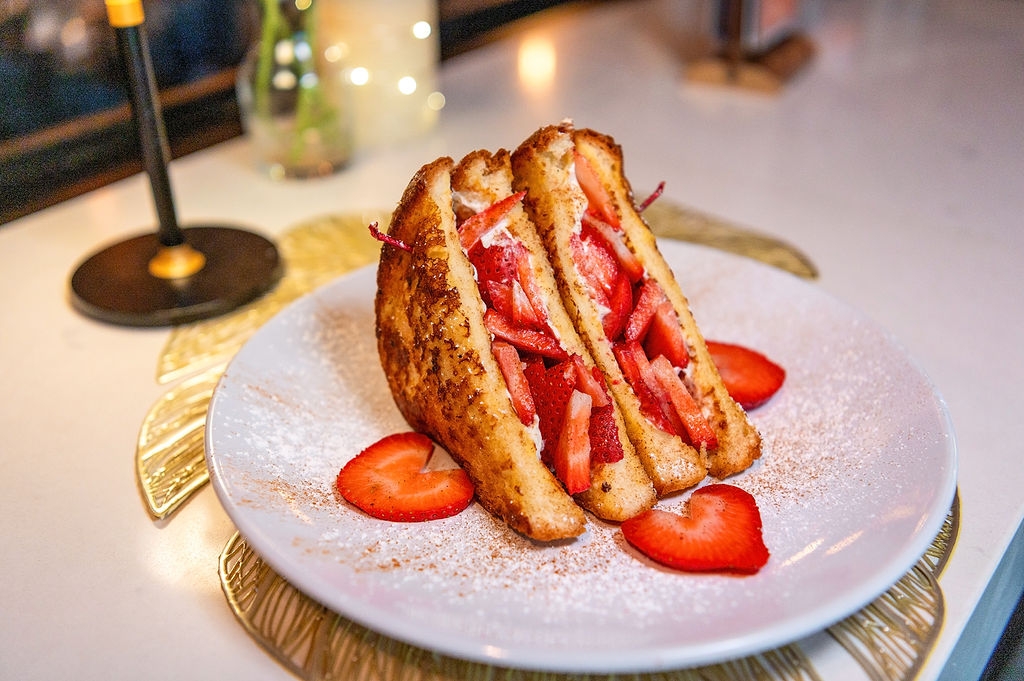 Sweet cream cheese, fresh strawberries, cinnamon