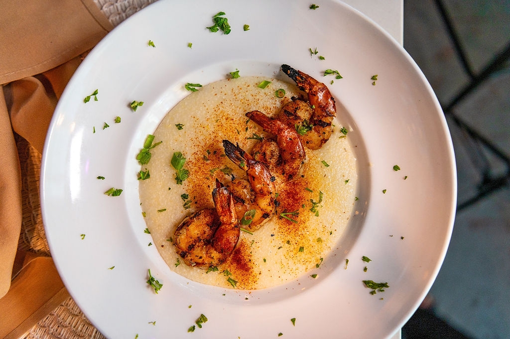 Black tiger shrimp, creamy grits