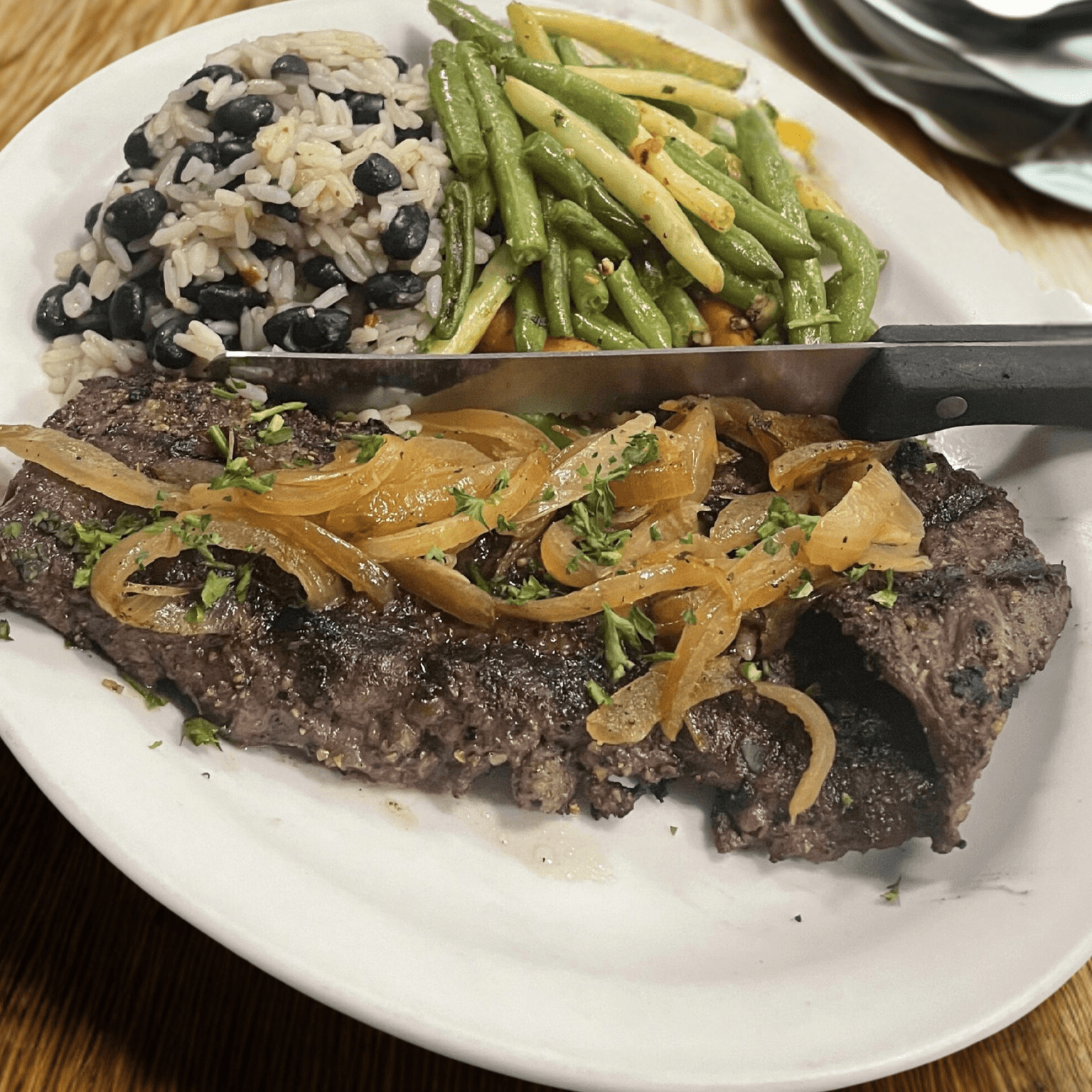 Marinated and grilled to perfection, rice & bean, vegetable medley