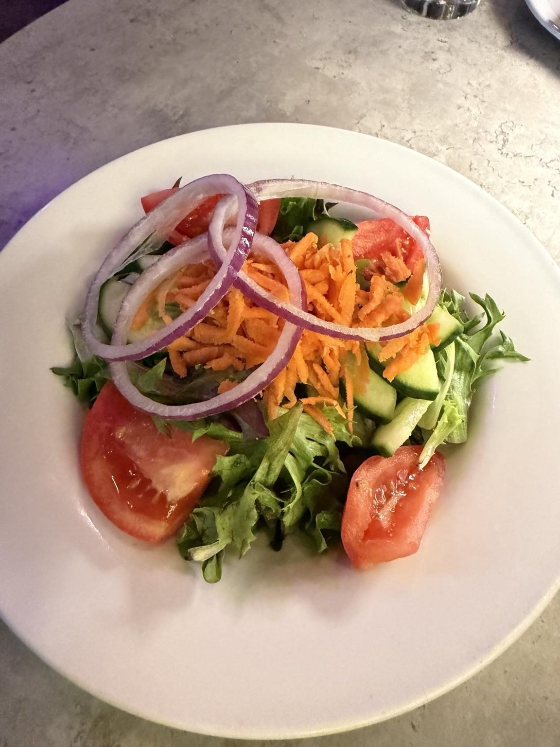 Tomatoes, cucumber, red onion, feta, pepperoncini, green peppers, kalamata olives