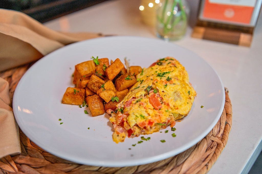 Includes home fries. Bacon, sausage, Italian herb ground beef