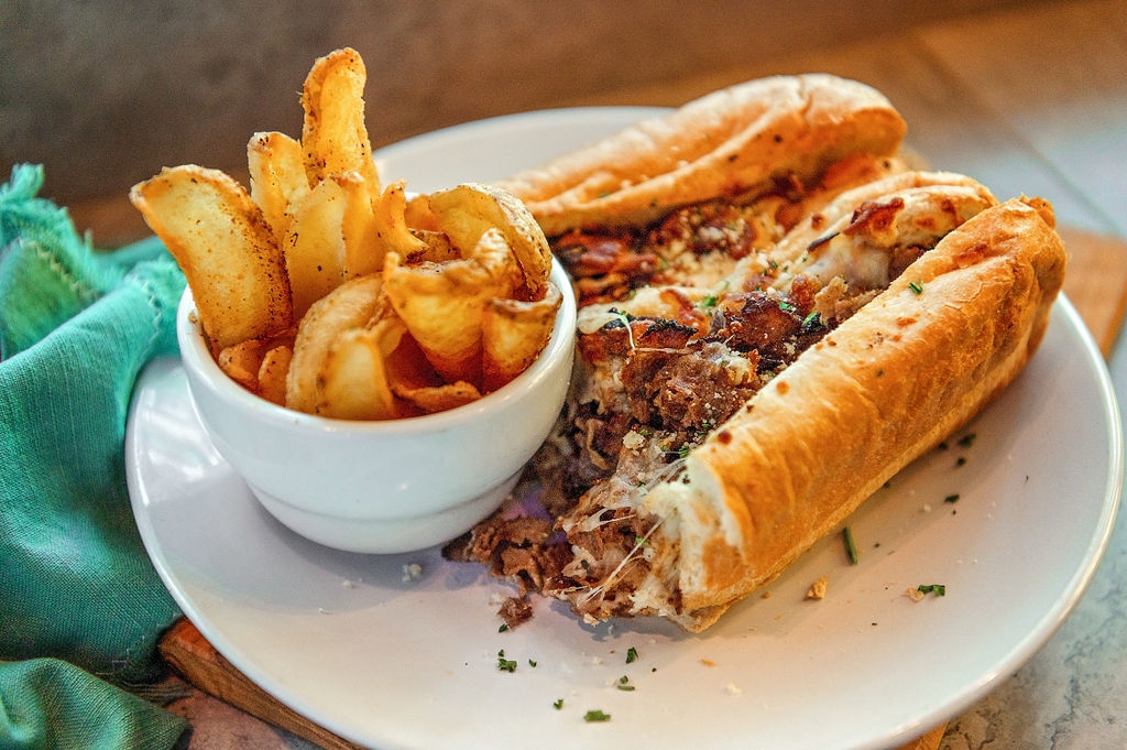 Shaved ribeye, grilled onions, melted mozzarella, mayo spread on a hoagie