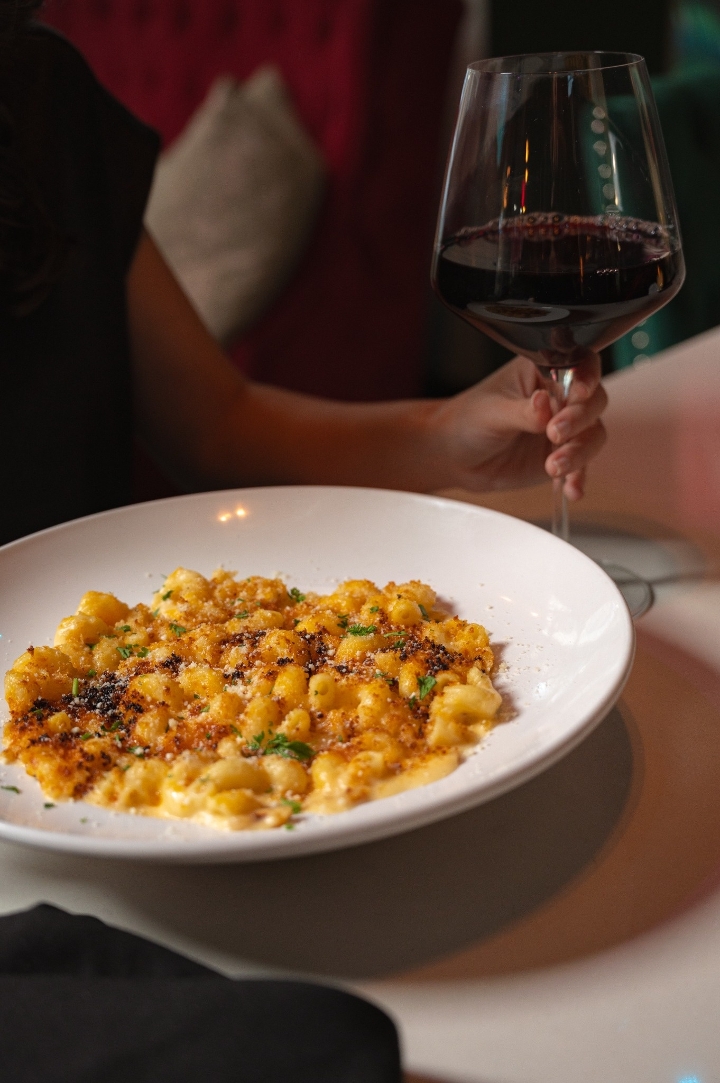 Truffle oil, gooey six cheese blend