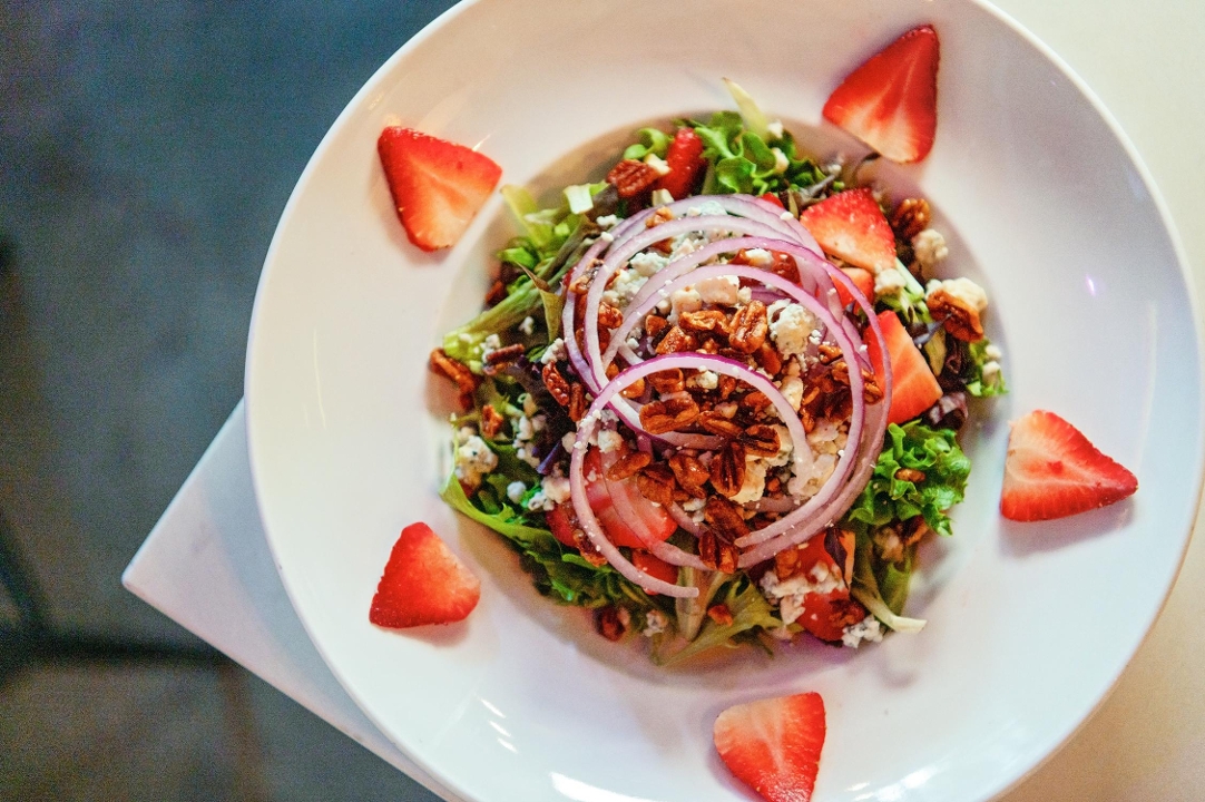Mixed greens, candied pecans, strawberries, red onions, bleu cheese crumbles, balsamic dressing
